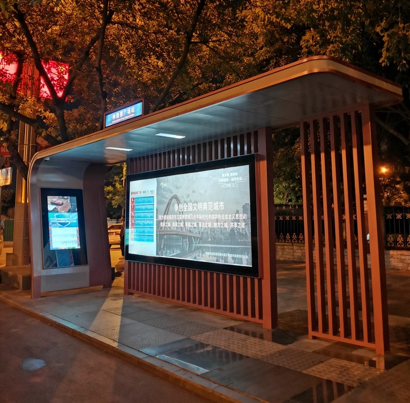 德陽智慧公交候車亭在與客戶不斷對接溝通下,終于如期完工交付使用,站臺采用高清LCD顯示屏,電子站牌,24小時畫面監(jiān)控,無線手機充電,無線WIFI,公交預報站,換乘信息,公交線路信息等。