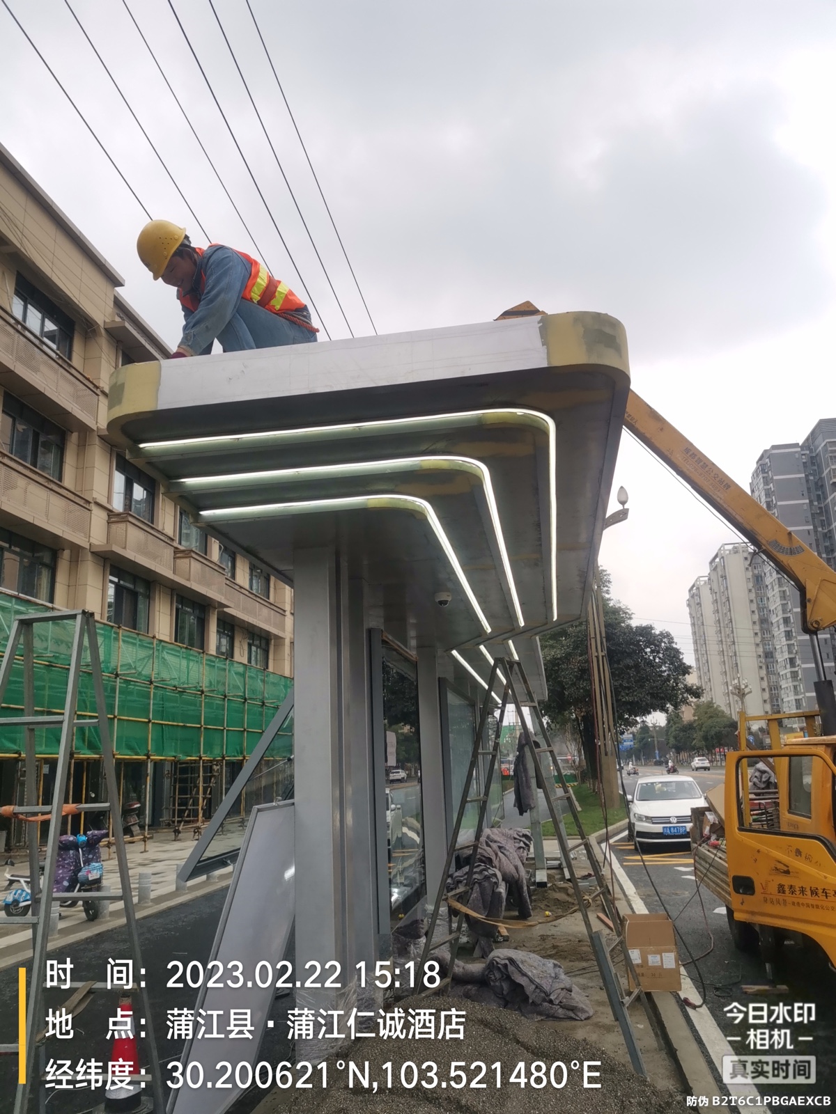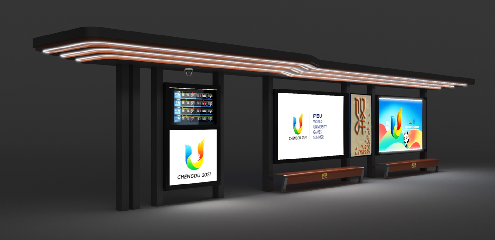 由我公司承建的四川蒲江朝陽大道、鶴山北路城市道路空間一體化改造項目--智慧公交站臺工程圓滿完工,造型呈一字形公交站亭,頂棚融入LED氛圍燈照明、每座站臺實現(xiàn)安全監(jiān)控、電子報站、座凳充電、地域特色LOGO。