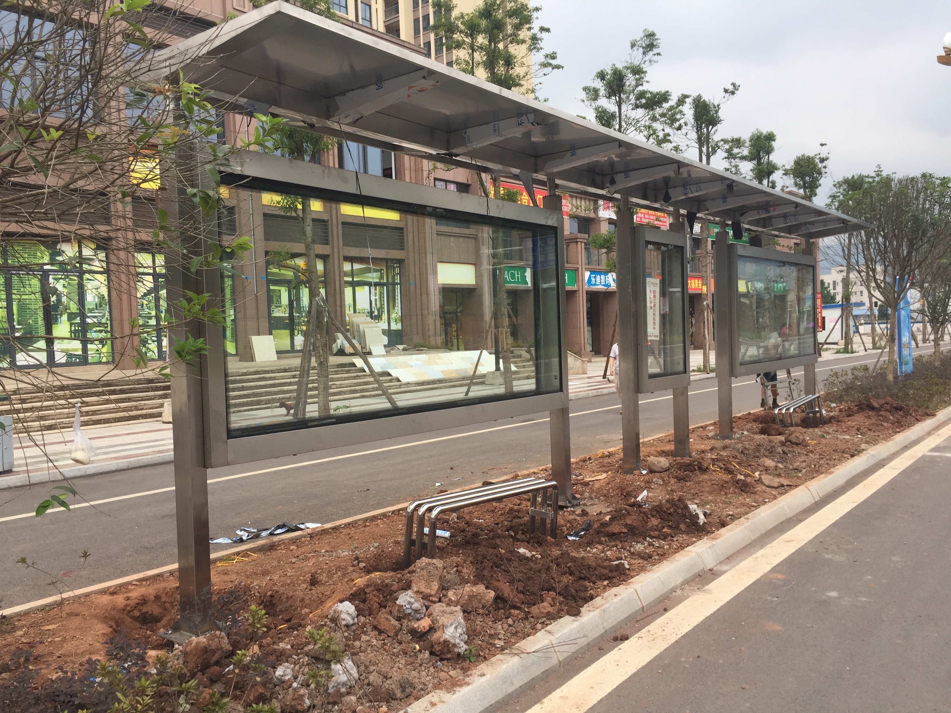 我公司中標(biāo)承建的雅安市滎經(jīng)縣76座公交站臺(tái)改造項(xiàng)目已經(jīng)全部完工,通過驗(yàn)收交付使用。該站臺(tái)全部采用不銹鋼材質(zhì),頂棚以當(dāng)?shù)赜忻?ldquo;鴿子花”為logo, 為旅游興縣營(yíng)造良好的環(huán)